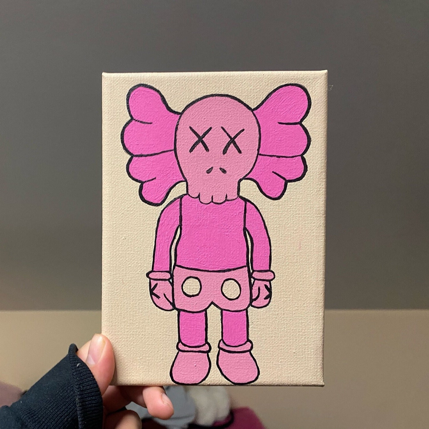Kaws Hot Pink Acrylic Cartoon Painting 7x5 Etsy De